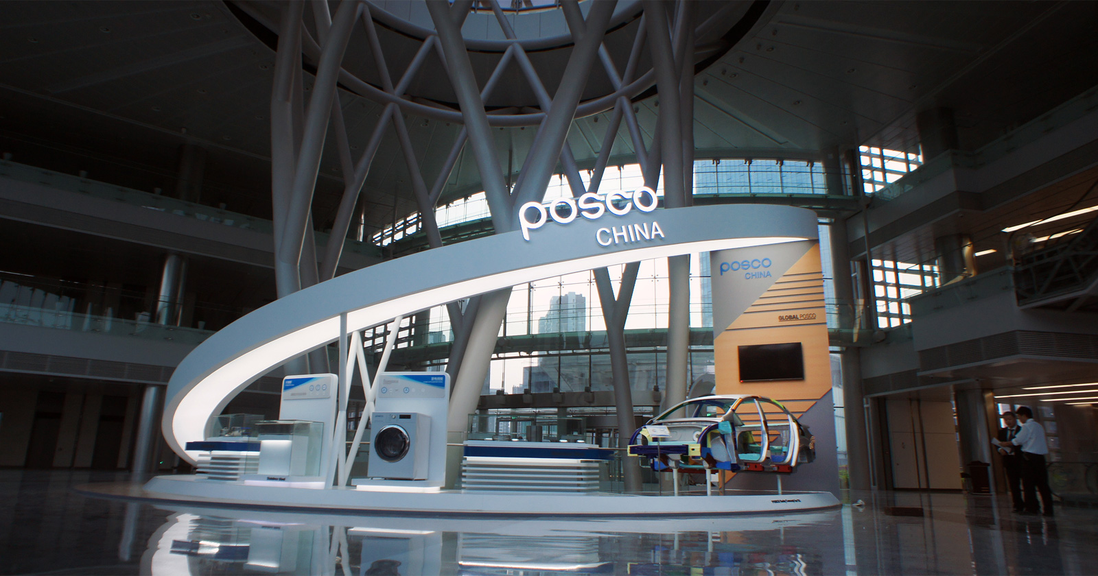 Eidetic Marketing was contracted to creatively design and construct POSCO's lobby exhibit for its Beijing office. Based upon the central pillar in the lobby, Eidetic Marketing offered an innovative solution to best portray the brand's capabilitis and global presence. Applying a spiral structure around the pillar, POSCO's products were placed atop the construct to best represent the corporation's services in one holistic view.